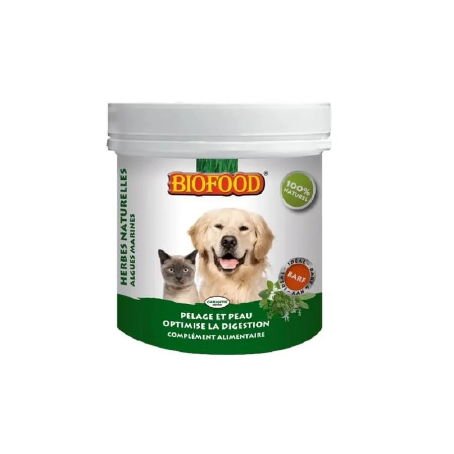 Les herbes naturelles de Biofood contiennent des vitamines, des minéraux et des oligo-éléments naturels pour soutenir le métabolisme, la digestion, la peau, le pelage et préservent la santé générale.