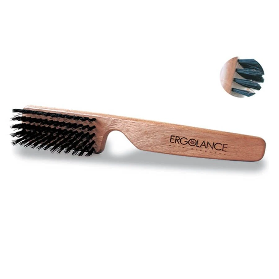 La brosse pur sanglier Ergolance est une brosse avec un manche en bois naturel ergonomique qui permet un meilleur confort et une meilleure prise en main.