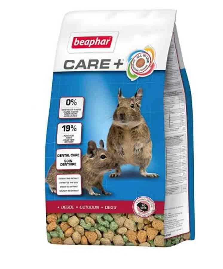 Care+ pour octodon est une alimentation super premium équilibrée et très appétente, qui a été développée en collaboration avec des vétérinaires et des diététiciens. L’alimentation Care+ est extrudée, donc chaque granulé à la même composition. Leur composition uniforme prévient toute carence qui pourrait résulter d’une sélection des aliments par votre octodon. La dureté des granulés participe à l’usure naturelle des dents. Le traitement thermique des granulés facilite la digestion. Care+ contient de la vitamine E pour les cellules du corps et a une teneur élevée en fibres. Il est enrichi en plantes aromatiques et est sans sucre ajouté. L’alimentation Care+ est parfaitement adaptée aux besoins nutritionnels des octodons.
