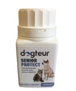 Votre animal prend de l’âge ? Pas de panique, nous avons trouvé un complément alimentaire qui fait la différence ! Dogteur Senior Protect est un issu de 20 ans de recherche dans différents domaines : dermatologique, vieillissement cellulaire et effets du stress.