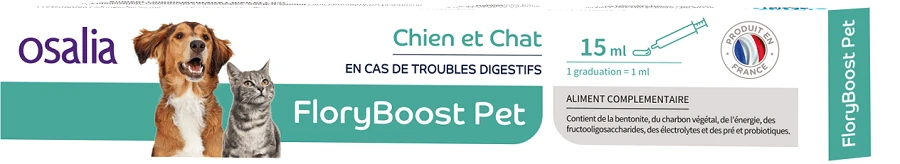 Floryboost Pet est un aliment complémentaire diététique pour chien et chat qui stabilise la digestion alimentaire. Floryboost pet normalise la consistance des selles grâce à une formulation très complète: bétonite, charbon végétal, électolytes, dextrose, pré et probiotiques. Il contribue à la bonne santé intestinale dans les conditions à risque et contribue à normaliser le transit intestinal. Le tout avec une excellente appétence et une galénique facile à doser et à administrer.