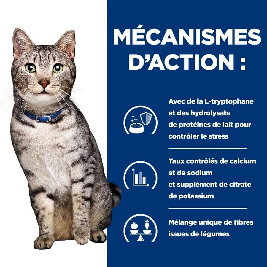 - La nutrition de Hill’s Prescription Diet Feline C/D Urinary Stress + Metabolic est cliniquement prouvée pour agir quel que soit le profil de dépense énergétique du chat, en activant sa capacité intrinsèque naturelle à brûler l’excès de graisses et à modifier sa consommation calorique.