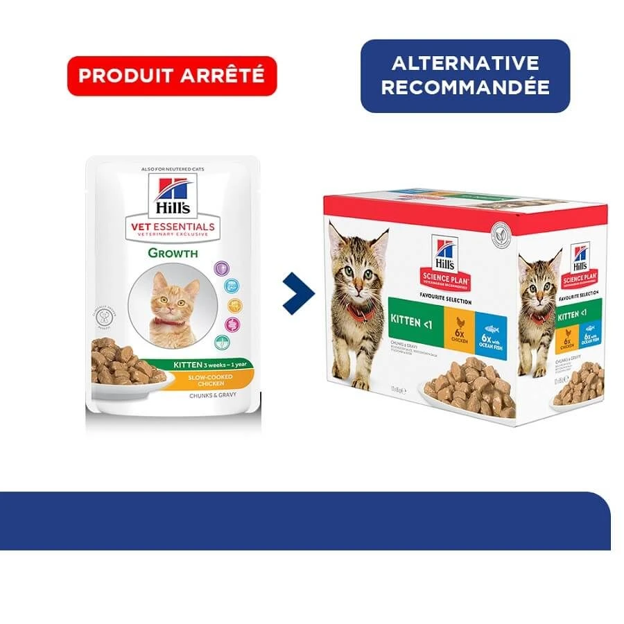 Pourquoi choisir la pâtĂ©e Hill’s Science Plan VetEssentials Kitten Growth 12 x 85g au Poulet ?