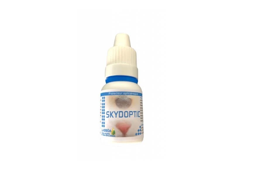Skydoptic est un nettoyant de la sphère oculaire et de ses annexes. Il a une action apaisante et désinfectante et contribue à limiter la coloration brune au coin de l’oeil.
