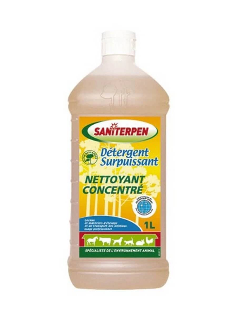 Saniterpen Détergent Surpuissant nettoie et dégraisse les locaux, matériels d’élevage et de transport.