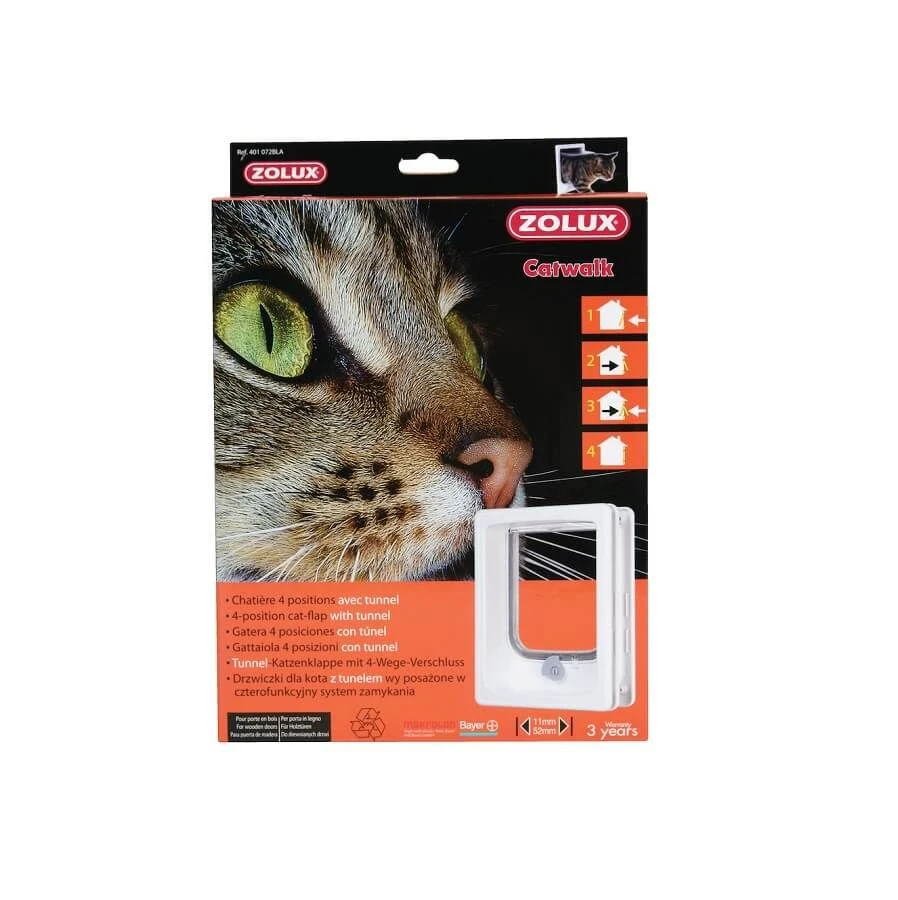 La chatière Catwalk avec tunnel de chez Zolux offre plus de liberté à votre chat en lui permettant d’entrer et de sortir de chez vous comme il le souhaite. Cette chatière facile à installer est spécialement conçue pour les portes en bois entre 11 mm et 25 mm d’épaisseur et s’adapte facilement grâce à son tunnel ajustable.